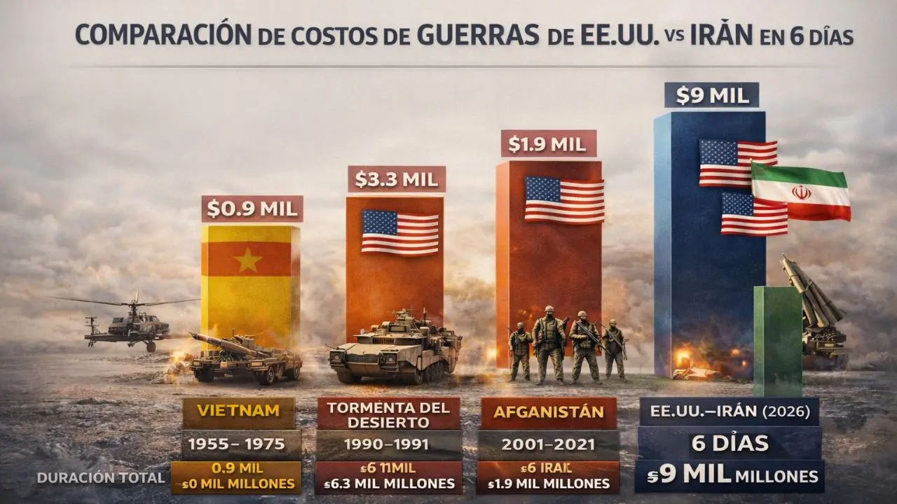 Desde el 28 de febrero hasta el 5 de marzo de 2026, apenas seis dÃas de operaciones, la confrontación ya ha generado un costo estimado de entre 7,000 y 9,000 millones de dólares.