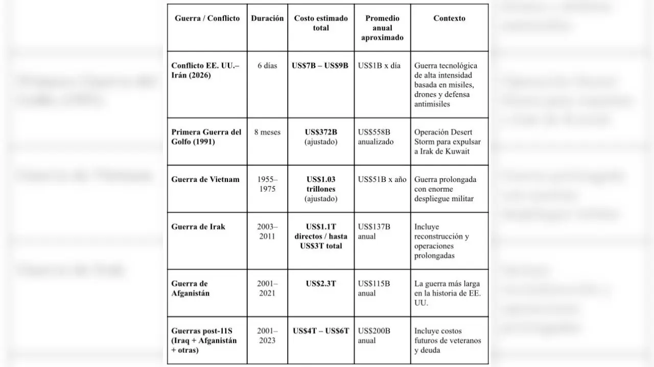 Si en apenas seis dÃas esta guerra ha costado entre 7,000 y 9,000 millones de dólares, la matemática del conflicto empieza a dibujar escenarios inquietantes.